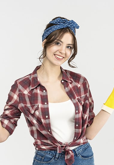 Sharon is an attractive housecleaner who offers 10 ready-made solutions to get rid of dirt and dust.